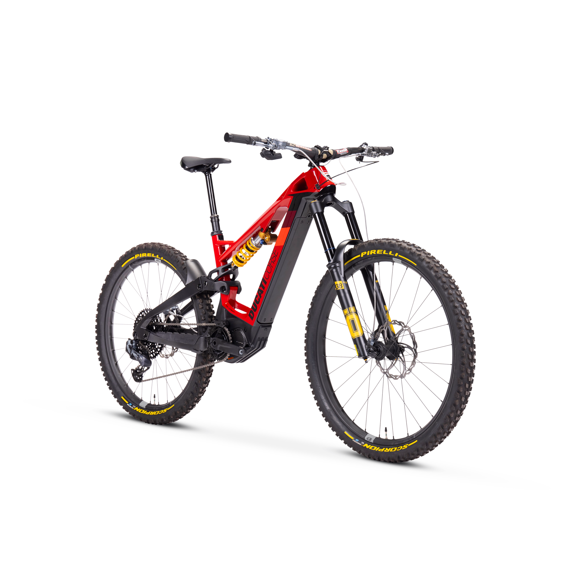 The new Shimano EP801 engine with its 85Nm of torque, Öhlins suspension, carbon wheels, powerful Braking brakes and 12-speed electronic SRAM drivetrain all ensure maximum performance on the most extreme enduro routes.