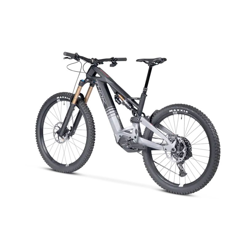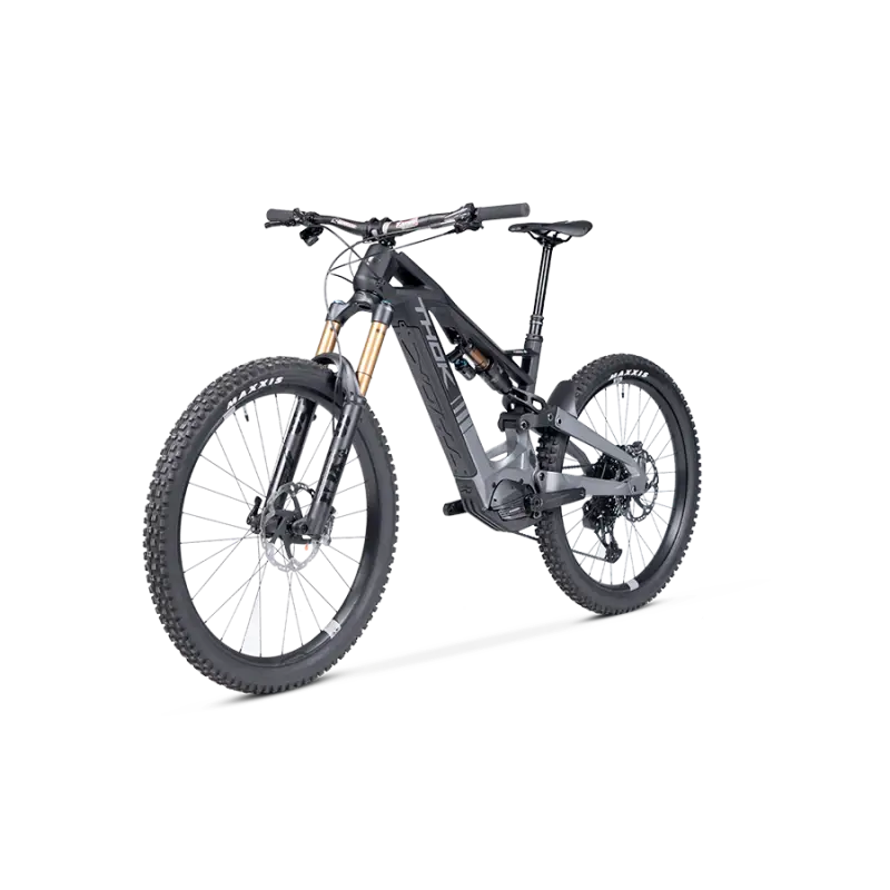 The new TPS-2 suspension system designed by THOK E-Bikes increases the progressivity of the kinematics and optimises its use in Enduro. The rear wheel travel is extremely progressive: it absorbs all types of obstacles when riding downhill and ensures maximum traction with climbs. The new full carbon rocker with symmetrical cushioning contributes to zero bending. The TPS-2 features polygonal seat-stay and asymmetrical one-piece chain-stay.