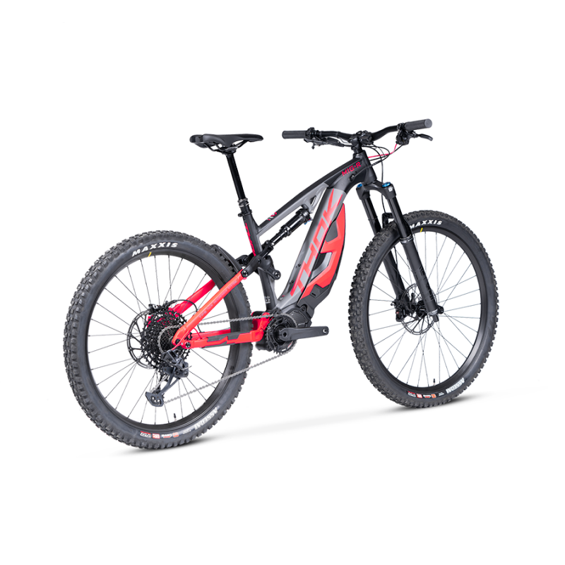 The MIG-R is the perfect e-bike for all-mountain enthusiasts who appreciate high-quality components. Featuring the SHIMANO EP8 drive unit, 630 Wh battery, FOX suspension, and mullet wheels, the MIG-R allows you to tackle long rides on all types of terrain. It is delivered with free shipping, a personalized frame with the owner’s name, dedicated setup parameters, and complete with THOKcare