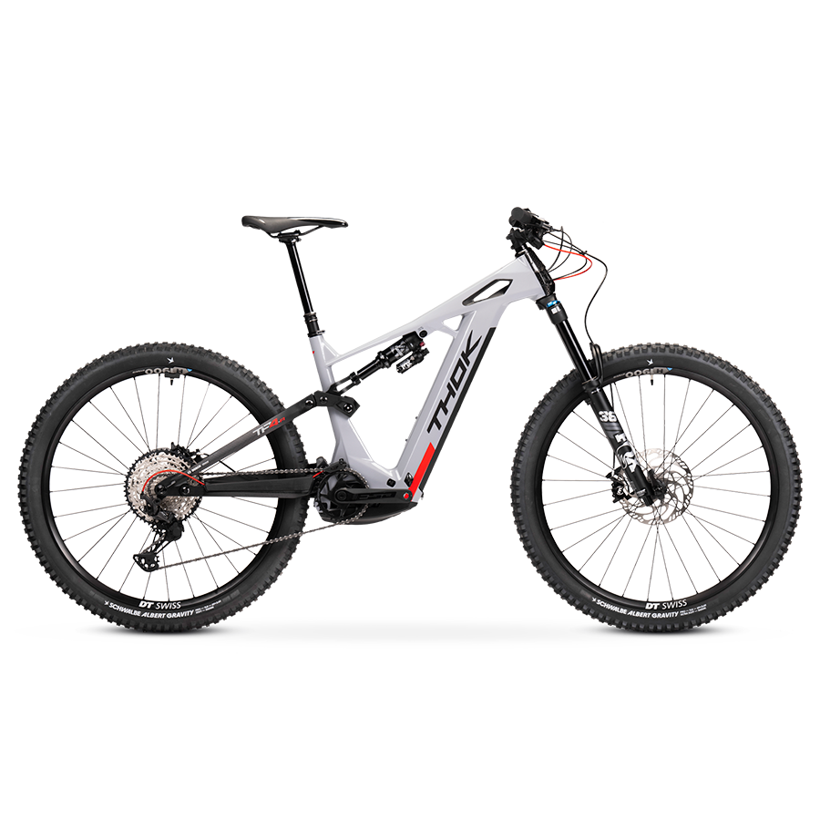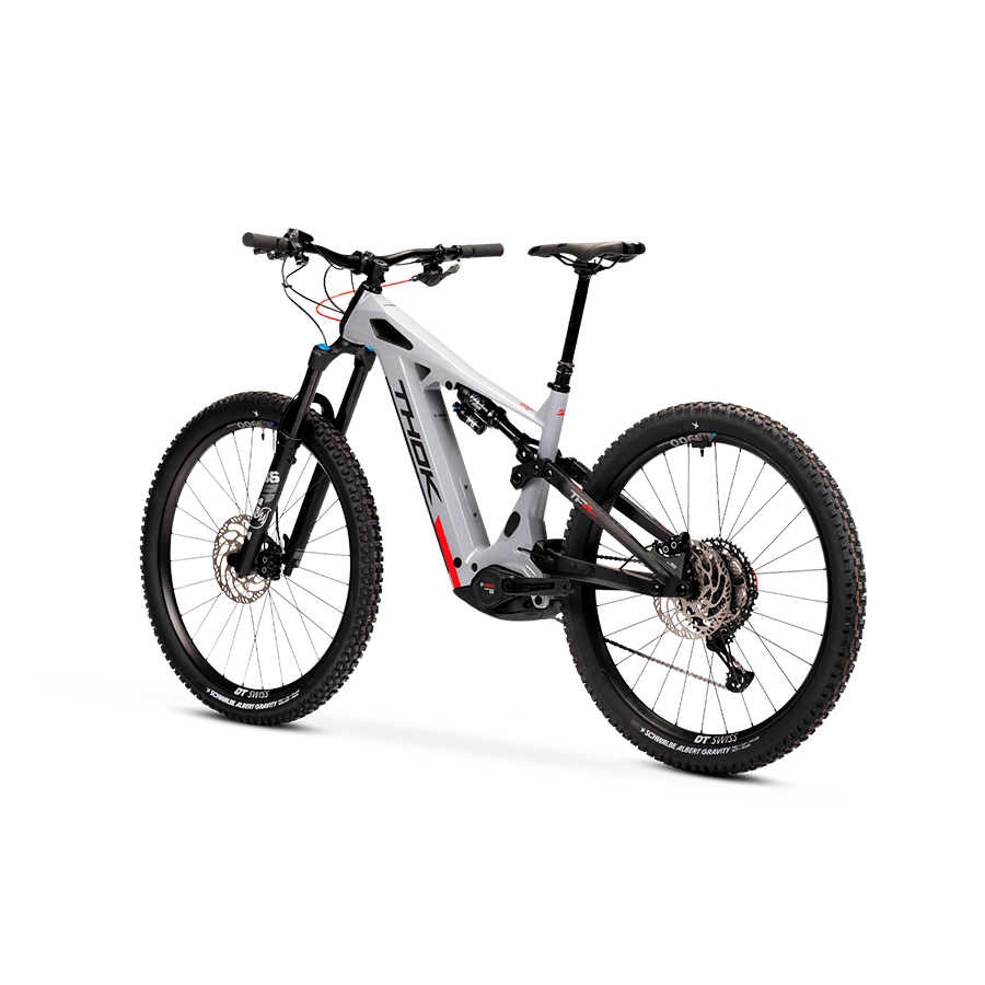 The TP4-R is THOK’s new e-bike, “full Made in Italy”: it has not only been fully designed in Italy like all models of the THOK range, but it has been also built and assembled in Italy. Carbon fibre frame (travel: front 160mm/rear 150mm), Bosch Performance Line CX motor, modular 800 Wh battery, FOX Float 36 Performance fork, FOX Float X shocks, Magura MT5 brakes, 29” wheels (compatible with the mullet set-up) and Flip-Chip technology, which allows riders to change the angles of the seat tube and head tube, and therefore of the bike’s behaviour. This way it can adapt to the various riding styles and terrains. The TP4 is very versatile: an enhanced all-mountain with an enduro side to it. Designed to take on the toughest climbs, it remains a great option for high-performing downhill sections, a hallmark of the brand’s DNA.